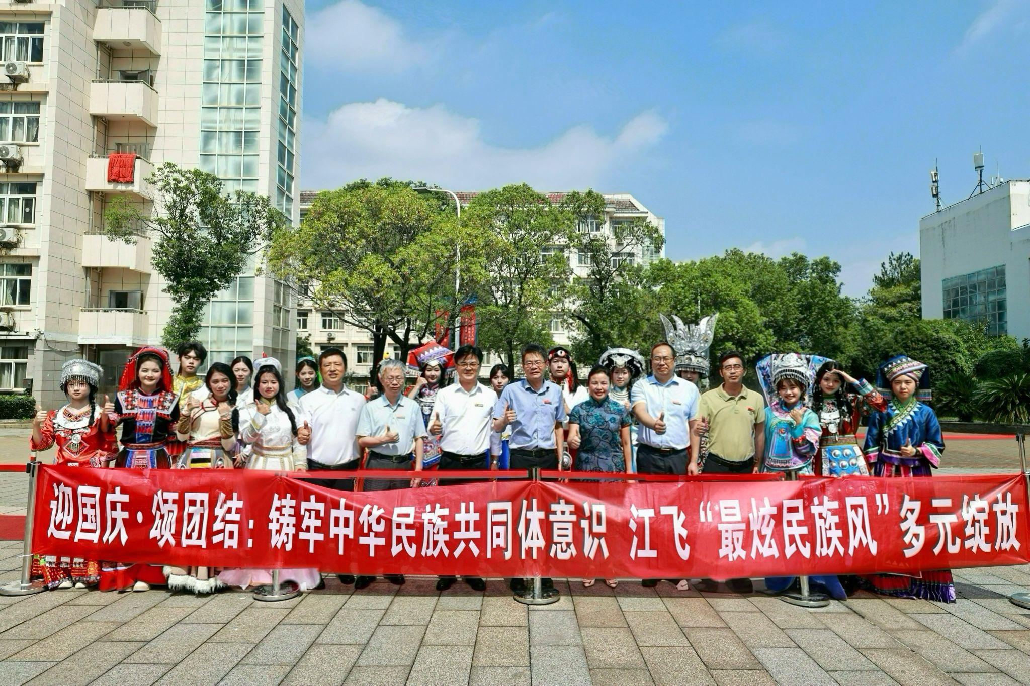 9月30日,学校“迎国庆·颂团结:铸牢中华民族共同体意识 江飞‘最炫民族风’多元绽放”主题民族走秀活动璀璨启幕。活动以灵动的民族艺术、厚重的文化底蕴为核心,将民族服饰与青春风采深度融合,生动诠释中华民族共同体意识。校党委书记陈震,校长龙国英,党委副书记张海涛,党委委员、副校长郭军华亲临现场观看表演。