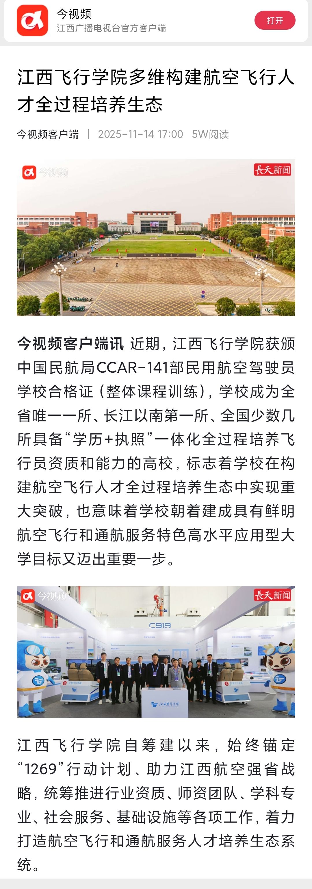 今视频:江西飞行学院多维构建航空飞行人才全过程培养生态