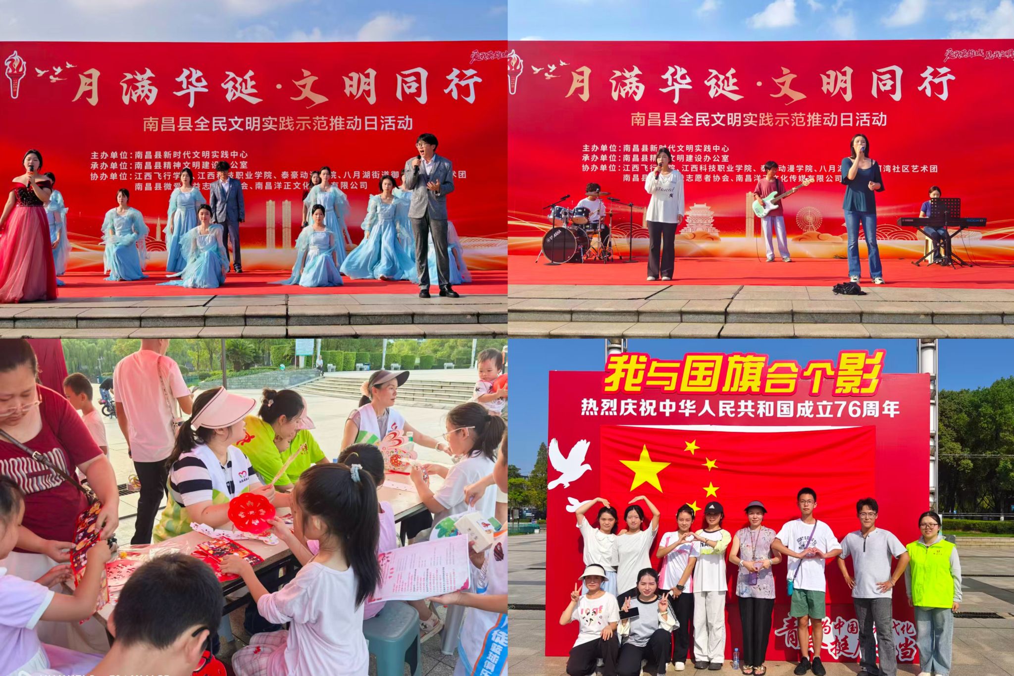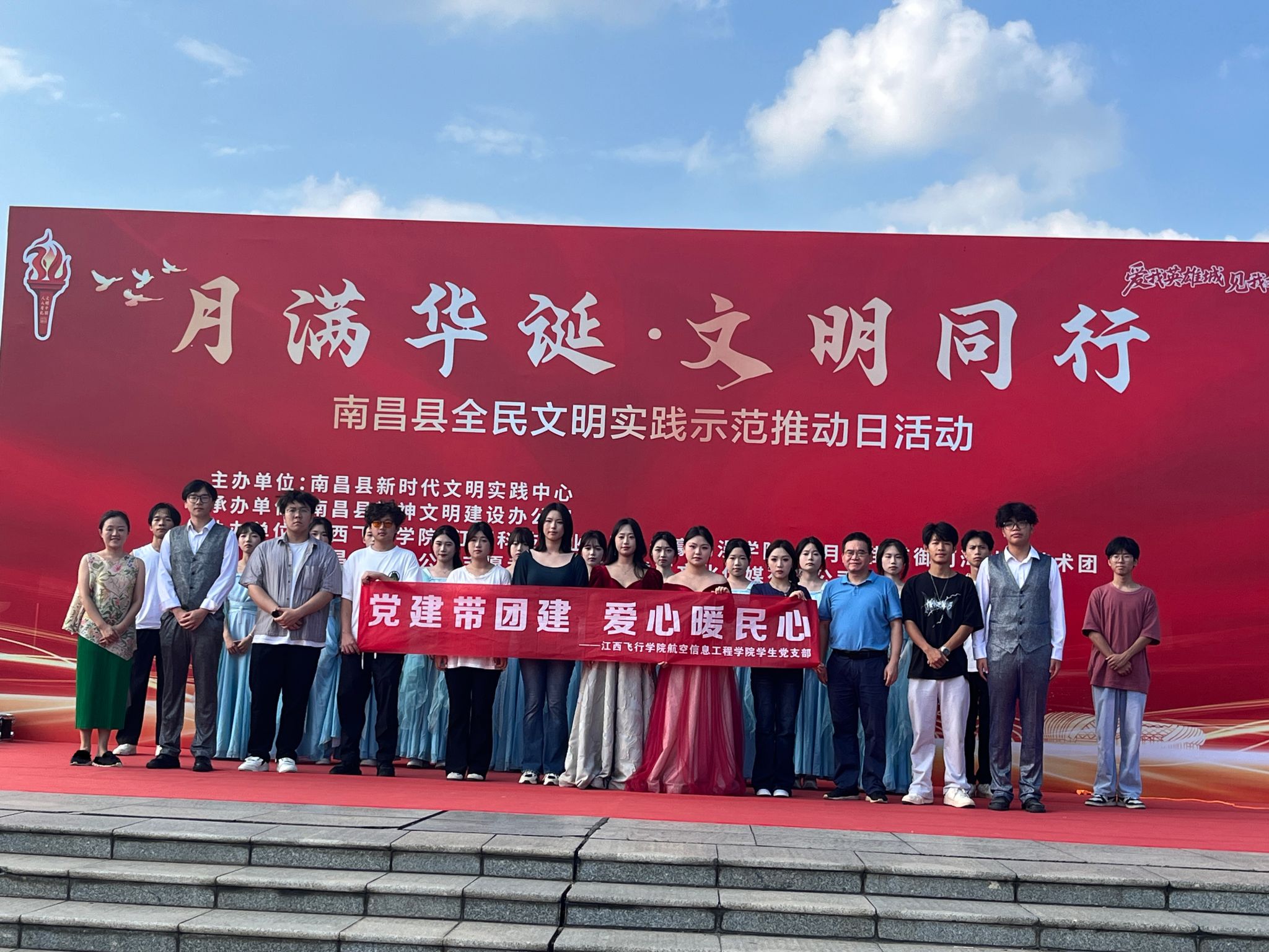 庆祝中华人民共和国成立76周年,弘扬爱国主义精神,凝聚青春奋进力量,9月27日下午,航空信息工程学院学生党支部联合南昌县新时代文明实践中心在南昌县澄碧湖南苑广场组织开展主题团日活动。航空信息工程学院党总支副书记李晓华、学生党支部书记康琳娜,学院入党积极分子、共青团员等共30余人参加此次活动。