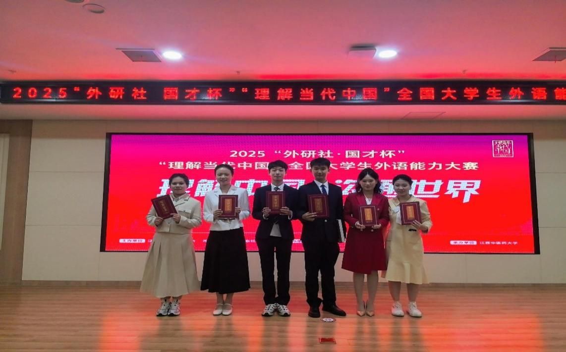 2025年“外研社·国才杯”“理解当代中国”全国大学生外语能力大赛英语演讲赛项江西赛区决赛于11月2日在江西中医药大学圆满落幕。本次大赛由外语教学与研究出版社主办,江西中医药大学承办,江西省外语协会与江西省大学外语教学研究会共同协办。在我校师生共同努力下,多位学子在比赛中脱颖而出,荣获多项荣誉。