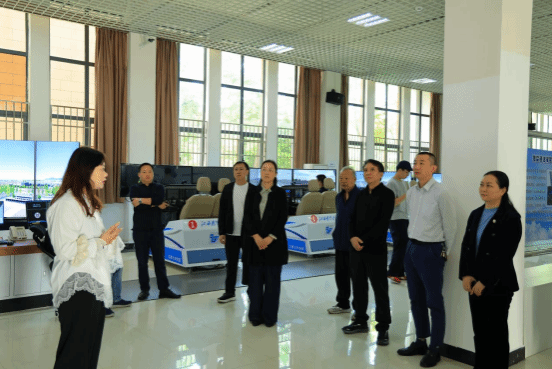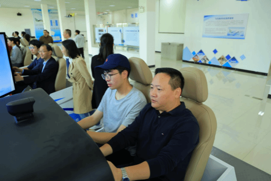 在工作人员的引导下,民进南昌县支部的会员在飞行模拟训练中心体验模拟飞机驾驶,参观飞行器维修实训中心和大飞机,了解学校“理论教学+模拟实训+实战训练”三位一体的人才培养模式及在飞行技术、低空经济等领域的学科优势与办学成就。